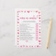 Hearts Over or Under Bridal Shower Game Stationery