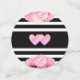 Modern, elegant pink love hearts and peonia flowers on black and white striped Wedding Table Confetti. Ideal for weddings, anniversaries, proposals or just a romantic encounter. Text can be personalised.