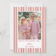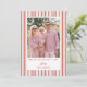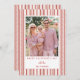 This whimsical striped valentine's day photo card is the perfect Valentine card to send out showcasing a photo. A whimsical design with a pink and red stripes and hearts background frames a valentine photo, with an editable Happy Valentine's Day message in red serif text.