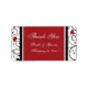 Valentine's Day Wedding thank you labels in stylish red, black, and white with delicate hearts and swirls, the perfect addition to your Valentine's Day wedding, available in matching card, invitations, and envelopes. Perfect for wedding favours.