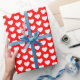 A wrapping paper with white hearts on a red background. You can choose the background colour of your preference.