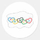 Hearts with Olympic colours and text "peace" Classic Round Sticker