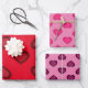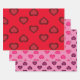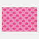 Wrapping Paper Sheets featuring hot pink hearts on pink, wine hearts on pink, and crimson hearts on red. Great for Valentine's day, wedding gifts, and baby girl birthday or shower gifts.