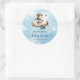 Celebrate your little aviator’s upcoming arrival with this adorable boy baby shower sticker featuring a cute teddy bear pilot flying a vintage airplane. Designed in a charming blue and brown color palette, this aviation-themed sticker adds the perfect touch of sweetness and adventure to any baby shower décor. Use it for favor bags, envelopes, gift packaging, party décor, thank-you tags, or diaper raffle prizes to instantly elevate your event’s theme.