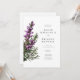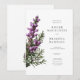 An original digital illustration of purple heather flowers in the style of vintage botanical sketches is featured on this invitation.