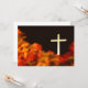 Heaven and Hell conceptual photo. White cross photographed at night, with blurred hydrangeas on the foreground.
