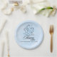 A little bit of heaven is on the way! These pastel blue watercolor paper plates showcases modern script typography adorned with stars, clouds, and a celestial moon. Personalise the text with baby mama's name and date for your boy baby shower.