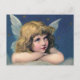 Heavenly angel daydreaming on a cloud in the sky postcard