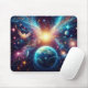 Computer mousepad with Angels. Images of Angels in the sky above the earth with galaxies in the background.