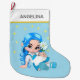 Heavenly Fairy Girl & Stars on Light Blue Christmas stocking. Name can be personalised.