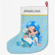 Heavenly Fairy Girl & Stars on Light Blue Large Christmas Stocking