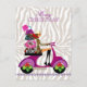 Super fun zebra animal print fashion purse lady on scooter.