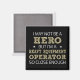 I may not be a hero, but I'm a Heavy Equipment Operator so close enough humourous word art in sans-serif and doodle cross-hatch font lettering in white and golden yellow.