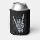 Heavy metal skeleton hand ,rock and roll Halloween can cooler. Heavy metal skeleton hand gester for rocker are heavy metal music fan ,a Halloween gift idea for heavy metal music lover.in Halloween style