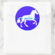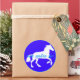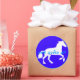 Lovely graphic of a white horse jn silohuette against a royal blue background with a frame and the words "Happy Birthday" in pastel blue. For the horse-lover.
