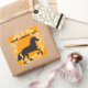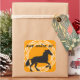 Cute black silohuette of a horse against a mustard yellow background and encircled in a vintage style circle. The words, "Yom Huledet Sameach" (Happy Birthday in Hebrew) match the black silohuette.