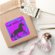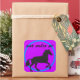 Cute black silohuette of a horse against a purple background and encircled in a light blue circle. The words, "Yom Huledet Sameach" (Happy Birthday in Hebrew) match the black silohuette.