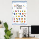This great poster will look wonderful on the wall of the kids' room or a classroom! The text on top reads Hebrew Letters in English and Ha'alef Beit Ha'ivri in Hebrew. The body of the poster features the entire Hebrew alphabet with colorful cheerful patterns.