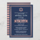 Invite family and friends to an elegant bat mitzvah ceremony and celebration for her with this navy blue, white, and pink rose gold invitation. All text is simple to customise, so it can include any wording regarding the service, Torah reading, and party. Design features Hebrew and English names, trendy faux rose gold foil Star of David, stylish art deco inspired typography, and modern script calligraphy. Mazel Tov!
