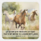 Inspirational quote Christian scripture sticker depicts a beautiful nature watercolor with horses running through a field of flowers. It features a portion of an encouraging Bible Verse Hebrews 12 1-2, "Let us run with endurance the race that is set before us, looking unto Jesus."