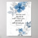 Inspirational scripture poster depicts a simple floral watercolor design with a modern double frame adorned with blue and grey flowers and leaves. It features Bible Verse Hebrews 13:5, ... God has said, "Never will I leave you, Never will I forsake you."