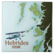 Hebrides Scotland map in a vintage style featuring a beautiful old bi plane.