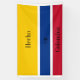 A Digitalbcon Images Design featuring a Colombian Flag to form the expression "Hecho en Colombia" Flag banner. This simple yet expressive design comes complete with customisable text letting to suit your own expression. ADD COMPLEMENTARY AND MATCHING GIFT IDEAS FROM THE COLOURS OF COLOMBIA COLLECTION AVAILABLE FOR PURCHASE THROUGH THIS STORE.