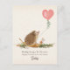 Cottagecore woodland themed valentine featuring illustration of mushrooms, hedgehog, and pink heart shaped balloon.