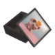I am so pleased with this little trinket box! The website photo doesn't do it justice. The photo on top is so glossy and beautiful! The colors are awesome. The lid and the box both have 2 little magnets so that the lid stays on, which I love. It arrived in good time. My 11 year old granddaughter is going to love it. Many thumbs up! There was no printing on this item, but the colors in the photo of the box lid are beautiful and vivid.