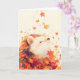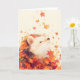 This charming autumn illustration captures a joyful hedgehog surrounded by a flurry of colourful falling leaves. The hedgehog, with a serene expression, enjoys the vibrant hues of red, orange, and yellow as they float around it in the peaceful fall setting. The soft watercolor style and warm autumn tones evoke a cosy, tranquil atmosphere, making this an ideal design for autumn-themed greeting cards.