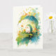 This delightful image features a small, adorable hedgehog standing amidst a colourful and vibrant garden. The hedgehog is surrounded by cheerful yellow and orange flowers, with soft pastel foliage and gentle, swirling colours adding a dreamy and peaceful ambiance. The hedgehog stands under the cover of a large leaf, offering a serene moment in the natural world, making this design a perfect expression of warmth and nature’s beauty.