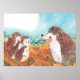 Mother hedgehog and young hedgehogs. Book illustration for a picture book 'The tale of the white winter' written and illustrated by Julia Doria.