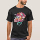 I give wanted to give this a 4 instead of a 5 because these Basic DARK T0shirts run unexpectedly SLIM or Narrow. Which is great if you do not have a potbelly, but I have a paunch. It isn't the shirt's fault that I've got a beer belly. The design and shirt itself is a quality cotton shirt. The color is more of a deep purple, but still a very pretty color. The Basic DARK T-shirts run a bit SLIMMER than the Basic Ts. The neck is a fraction narrower (or seems to be narrower) also. I'm a paunchy middle-aged woman and my neck is 12 inches (31cm) thick and the neckline fell about the same as in the photo of the man, and I had the desire to tug it a bit. So if you're a thick necked man or like loose shirts, be aware these are slimmer shirts. Once I get rid of my lockdown paunch it'll look great. The shirt washed well in cold water with no apparent bleeding. We don't have a dryer, so it hung dry. Did not shrink. Love the colors and the design. The design looks smaller on my shirt than it does on the model on-line. But still, it looks good on the shirt. The printing looks as it does on the model, just the size seems fractionally smaller. Washed garment in cold water, hung dry and design appeared unaffected.