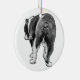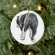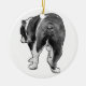 Fine speckles read like tiny stars around a crisp back-view portrait. Hang it centre-stage and let that playful stance return every December. A sentimental keepsake for bulldog families.