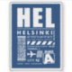 Helsinki HEL Airport boarding pass and Finnish flag colours, luggage tag style design for explores and travel lovers.
