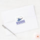 A fun sticker for kids that love helicopters and aeroplanes. A helicopter ready for lift off. A border of blue and white stripes and little red stars.