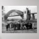 Hell Gate Bridge. Group of 20 men posed in foreground, New York City. Gustav Lilenthal, engineer stands centre with white beard. To his right is his chief assistant Othmar Ammann (moustache). Photo taken October 11, 1916.