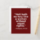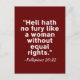 Postcard design with sarcastic protest quote to the overturning of Roe v. Wade. ""Hell hath no fury like a woman without equal rights." - Fallopians 20:22 White text on red background