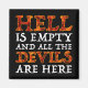 Hell Is Empty And All The Devils Are Here. This quote is from William Shakespeare's The Tempest. It reflects on the observation that humanity is capable of evil acts.