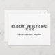 Minimalist style typography postcard with famous "Hell is Empty" quote by William Shakespeare