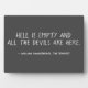 Hell is Empty Shakespeare Quote Plaque