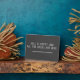Minimalist style typography tabletop plaque with famous "Hell is Empty" quote from The Tempest by William Shakespeare. White casual handwriting style font on charcoal grey background.