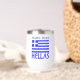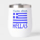 Thermal wine tumbler features the Greek flag and the word HELLAS, in blue letters, below. Above is a spot for a name, in blue letters, yours or for a gift. Great to take to family reunions, travel groups, or clubs. Terrific gift for mum on Mother's Day. Also, keep your wine cold on Oxi Day.