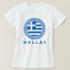 Hellas women's distressed design white T-Shirt featuring the national flag of Greece inside a Greek blue Aztec circle. This T-Shirt is ideal if you are Greek or to wear while you are enjoying your vacation in Greece. You can also give this as a gift from Greece to anyone who will like this T-Shirt.