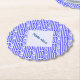 Design on paper coaster features the Greek flag and the word, HELLAS, below in blue, tiled diagonally for an artistic look. The flag shows blue and white stripes with a blue and white cross in the upper right area. A white fractal of squiggly squares holds a spot for a name to personalise the paper coaster for your party, Greek family reunion, or travel group. Great for Oxi Day, too.or create a customised gift.