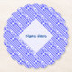 Design on paper coaster features the Greek flag and the word, HELLAS, below in blue, tiled diagonally for an artistic look. The flag shows blue and white stripes with a blue and white cross in the upper right area. A white fractal of squiggly squares holds a spot for your name, in blue letters, to personalise these coasters for your party or family reunion. And, for celebrating Oxi Day.