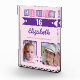Hello 16 (any age) name est date pink purple photo block