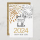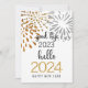 Hello 2025 Gold Glitter Festive Fireworks New Year Holiday Card