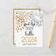 Hello 2025 Gold Glitter Festive Fireworks New Year Holiday Postcard