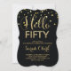Hello 50 Black Gold Confetti 50th Birthday Invitation